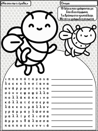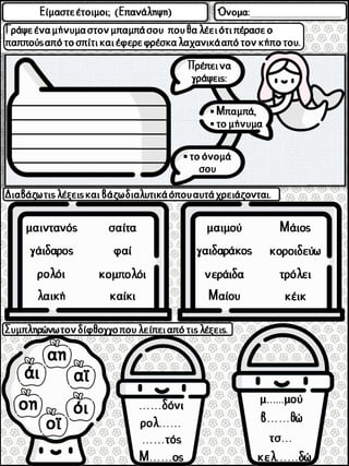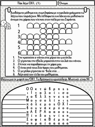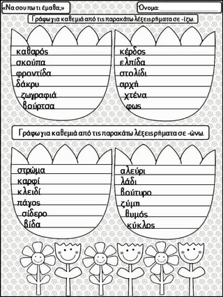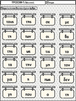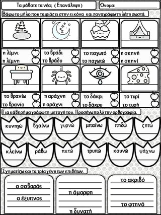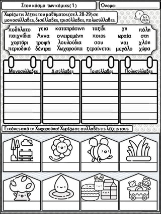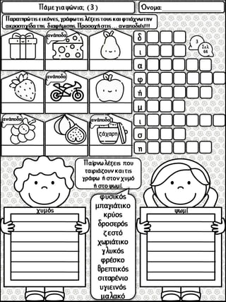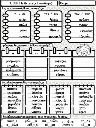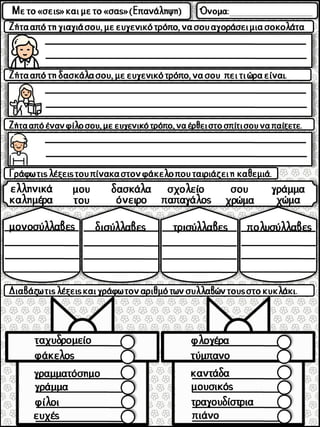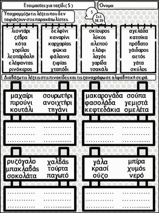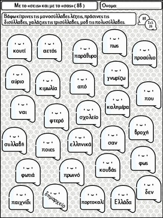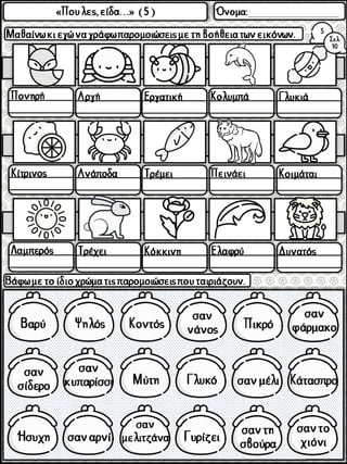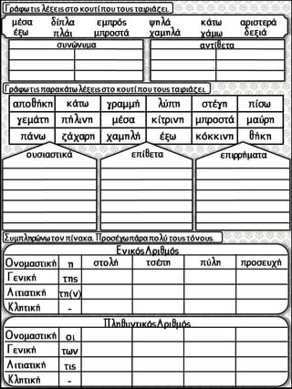Φύλλα εργασίας και εποπτικό υλικό για τη γλώσσα