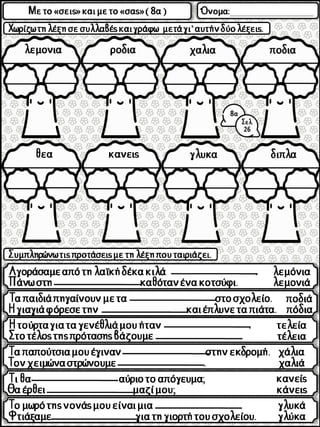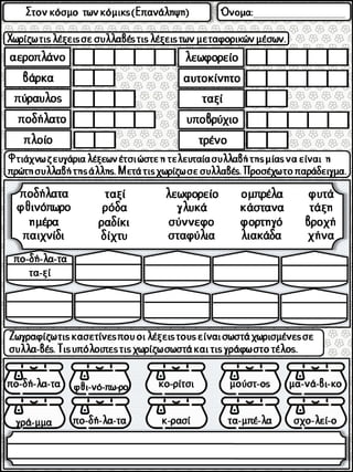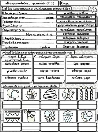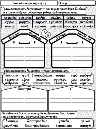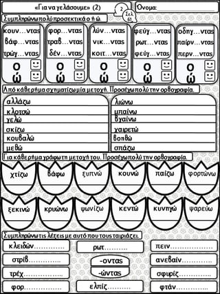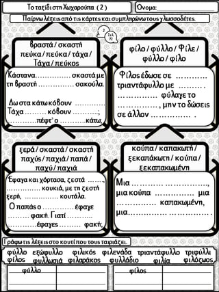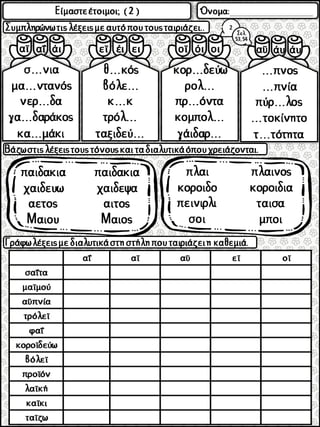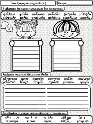 Φύλλα εργασίας για όλες τις ενότητες της γλώσσας της β΄ δημοτικού