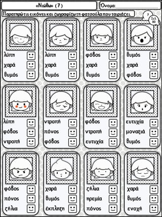 Συναισθήματα. Φύλλα εργασίας κάρτες, αφίσες.