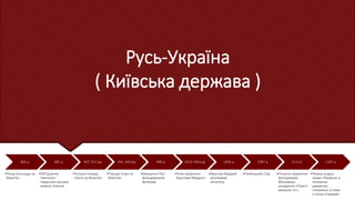 Презентація на тему "Рсуь-Україна (Київська держава)". В презентації позначені всі дати які потрібно знати на ЗНО, опис руських князів, карти. Можна використовувати для підготовки до ЗНО/НМТ.
