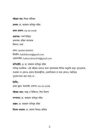অটিজম স্পেকট্রাম ডিসঅর্ডার (ASD) একটি জটিল স্নায়বিক বিকাশজনিত ব্যাধি যা শিশুর সামাজিক যোগাযোগ, ভাষা বিকাশ এবং আচরণের বিভিন্ন ক্ষেত্রে সমস্যা সৃষ্টি করে। এই বইটি বিশেষ করে অটিজম সম্পর্কে সচেতনতা বৃদ্ধি, সঠিক জ্ঞান প্রদান এবং অটিজম আক্রান্ত শিশুদের সহায়ক পরিবেশ তৈরির লক্ষ্যে রচিত হয়েছে।