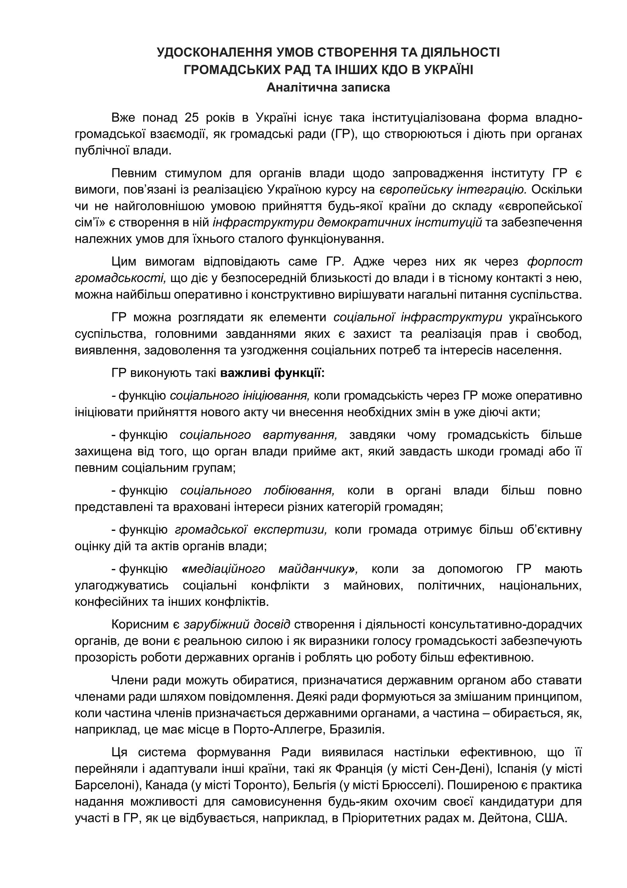 Удосконалення умов створення та діяльності громадських рад та інших КДО в Україні