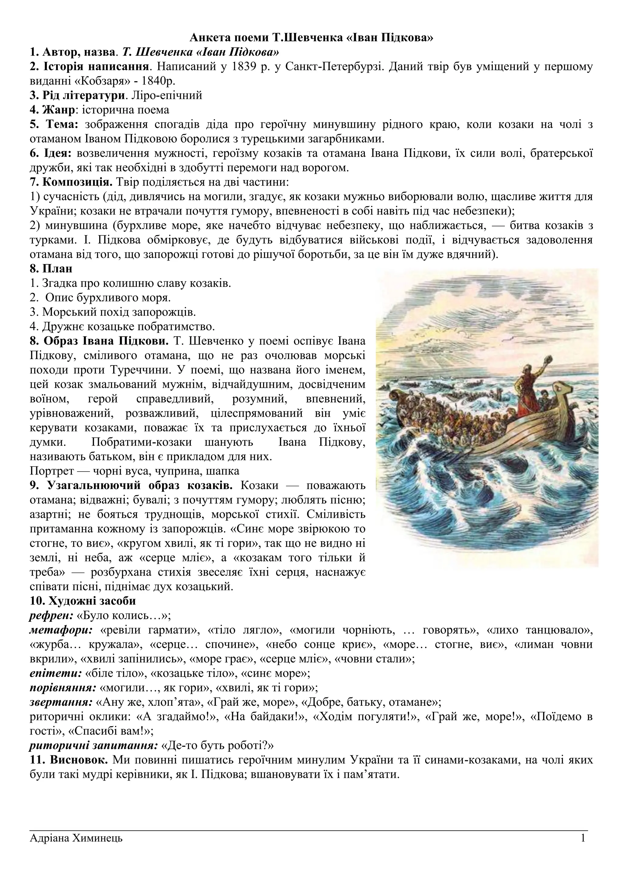 1. Автор, назва. Т. Шевченка «Іван Підкова»