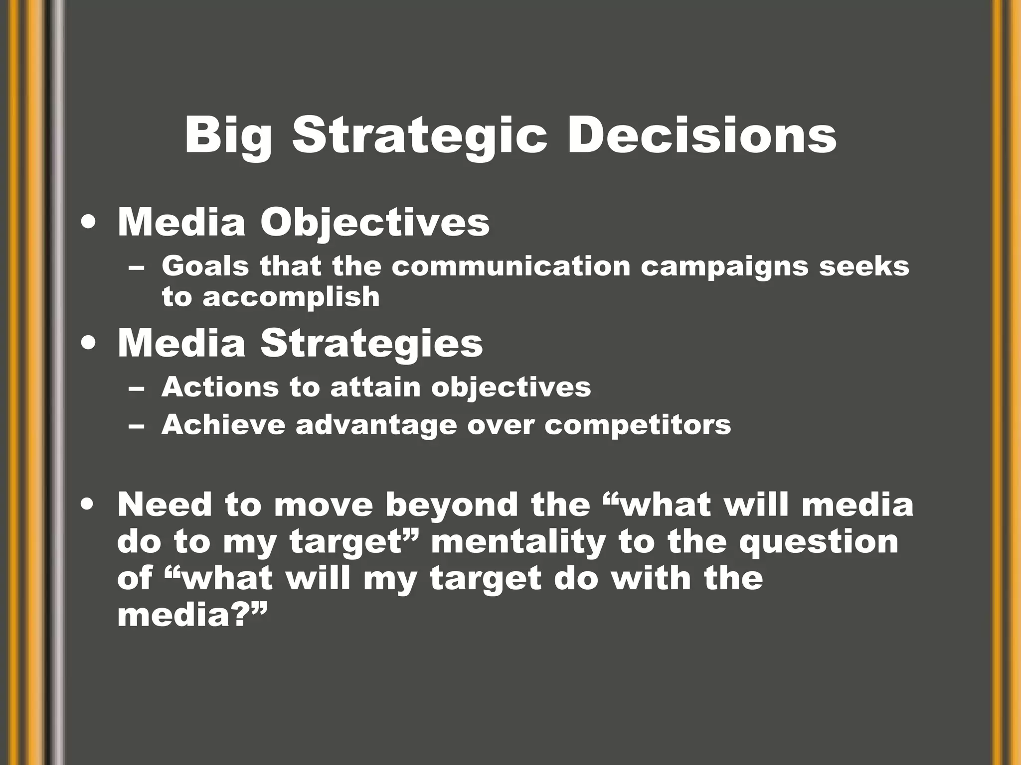 The document outlines key considerations for developing an effective media planning manual and strategy. It discusses setting media objectives and strategies to achieve goals and gain competitive advantage. Some of the essential elements that must be considered in developing the media strategy and plan include understanding the target market, competitors, and strengths/limitations of different media. The strategy must balance reaching audiences with adequate frequency while working within budget constraints.