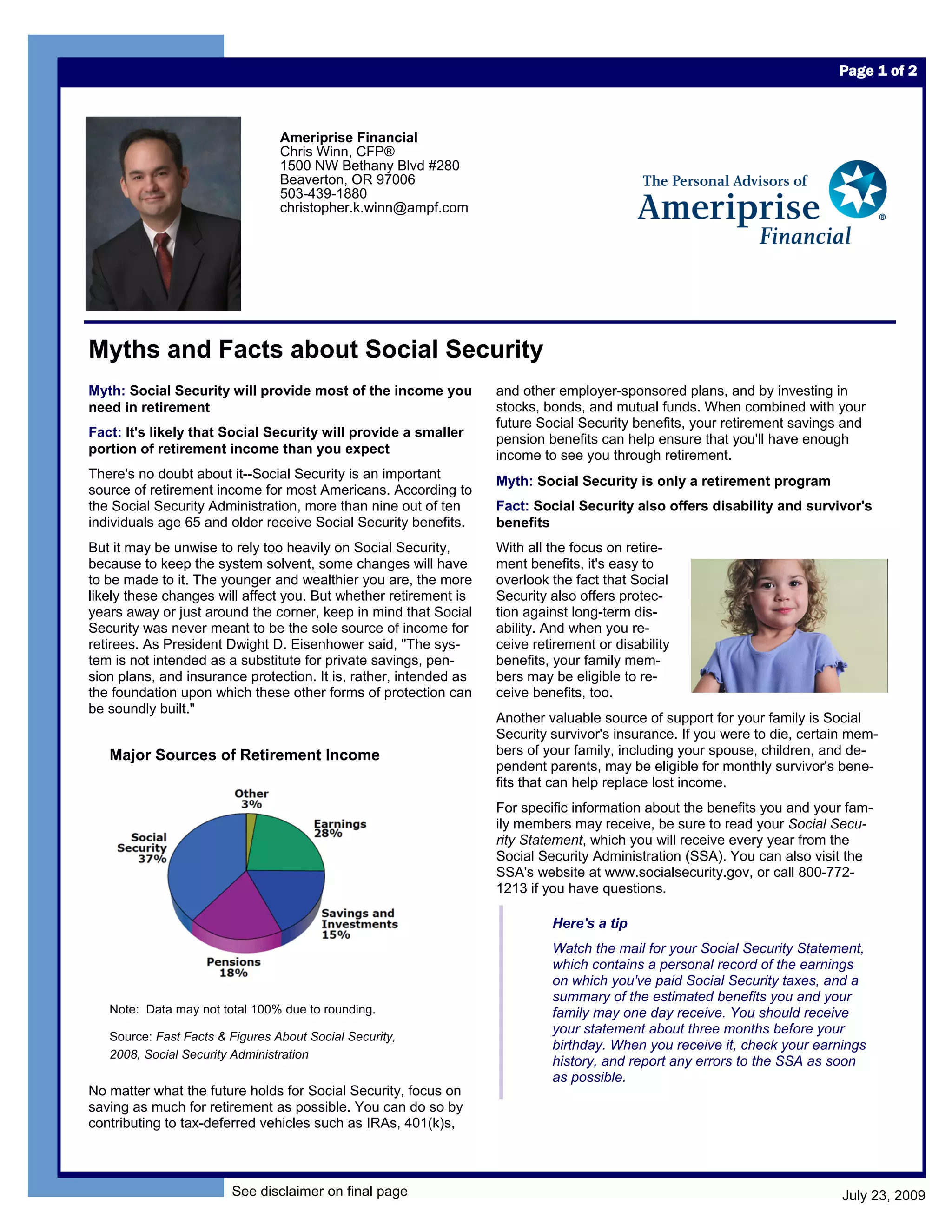 Social Security will likely provide less retirement income than expected. It was intended as a foundation for other savings through pensions, investments, and insurance. While focusing on retirement benefits, Social Security also offers disability and survivor benefits. Earnings after retirement only impact benefits for those below full retirement age. Benefits may be taxable based on other income levels.