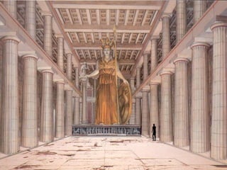 Στο εσωτερικό τουΠαρθενώνα, στο σηκό, ήταν τοποθετημένο το χρυσελεφάντινο άγαλμα της θεάς Αθηνάς. Είχε ξύλινο σκελετό, τα γυμνά μέρη του σώματος ήταν από ελεφαντόδοντο και τα ντυμένα από φύλλο χρυσού (βάρος χρυσού περίπου 1 τόνος). Στη θέση των ματιών ήταν τοποθετημένοι πολύτιμοι λίθοι. Το συνολικό του ύψος έφτανε περίπου τα 12 μέτρα.