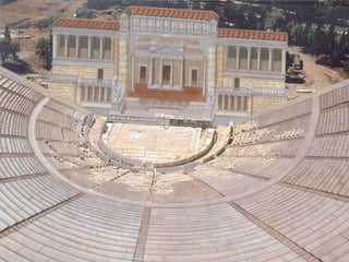 Το θέατροτου Διονύσου , λαξευμένο στη νότια κλιτύ του ιερού βράχου τον 5ο αι. π.Χ., φιλοξενούσε στην αρχική του μορφή 15.000 θεατές. Δεν έχουν σωθεί ίχνη του θεάτρου με την αρχική του μορφή, του 5ου π.Χ. Τμήμα του θεάτρου και της σκηνής που βλέπουμε σήμερα οφείλεται σε μεταγενέστερη ανακαίνιση του 86 π.Χ.
