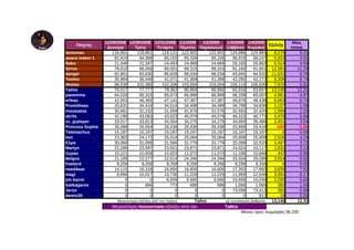 The document appears to be financial records listing the daily earnings of various individuals from December 29, 2008 to January 4, 2009. It includes their names, earnings on each date, total earnings, and percentage increase. The highest earning individual was Tallos, with total earnings of 13,140 and a percentage increase of 12.31%.