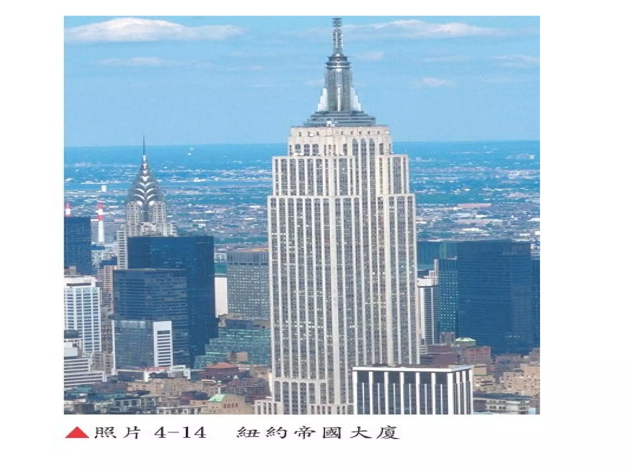 現代藝術代言人 服裝、寶石、流行和出版中心 建築: 1932 年完成 102 層的帝國 大廈被稱『世界第八奇蹟』,百老 匯
