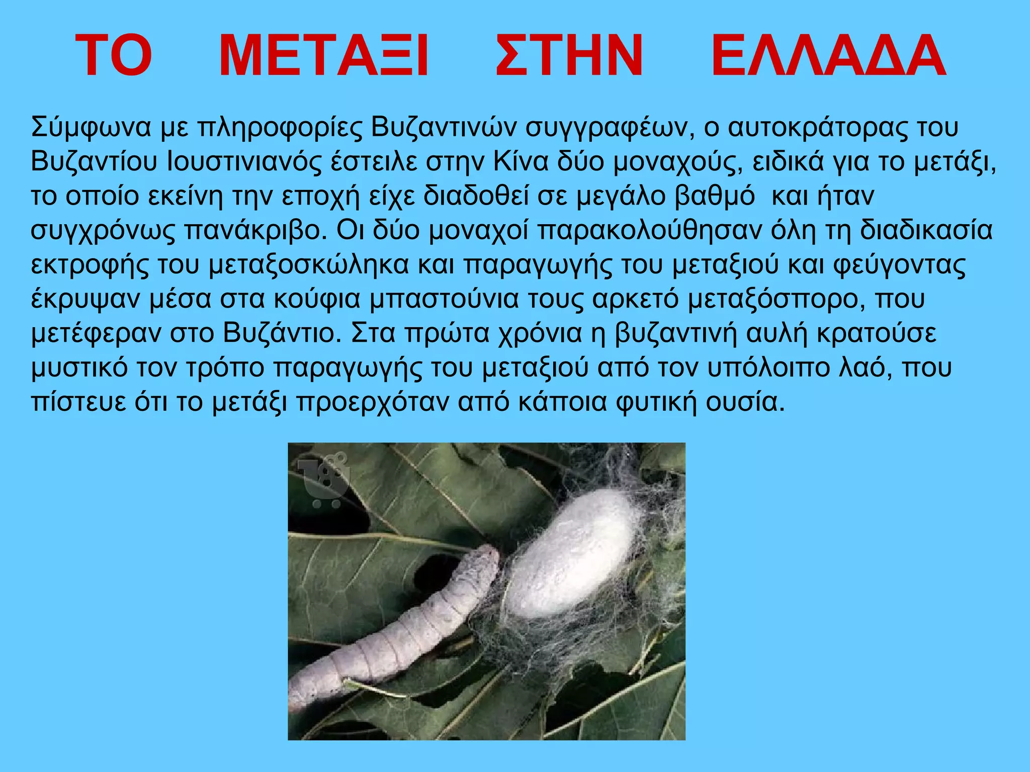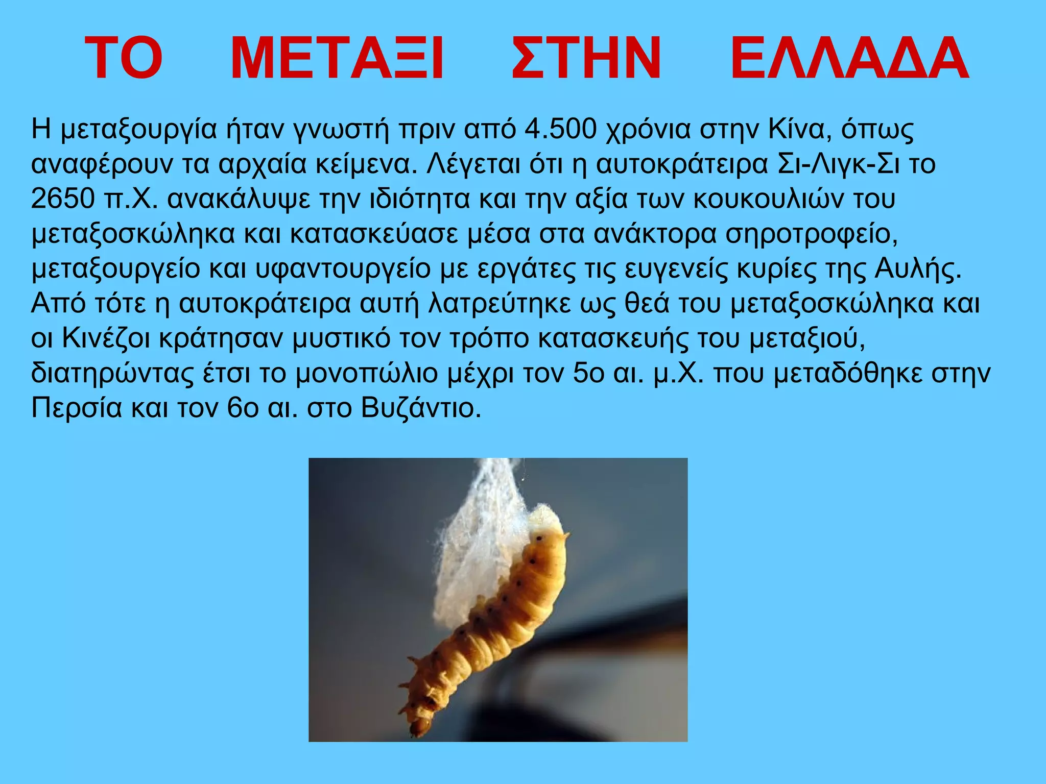 εκτροφής του μεταξοσκώληκα και παραγωγής του μεταξιού και φεύγοντας
