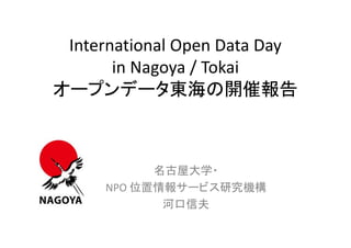 Day in Nagoya / Tokai オープンデータ東海の開催報告 名古屋大学・ NPO 位置情報サービス研究機構 河口信夫
