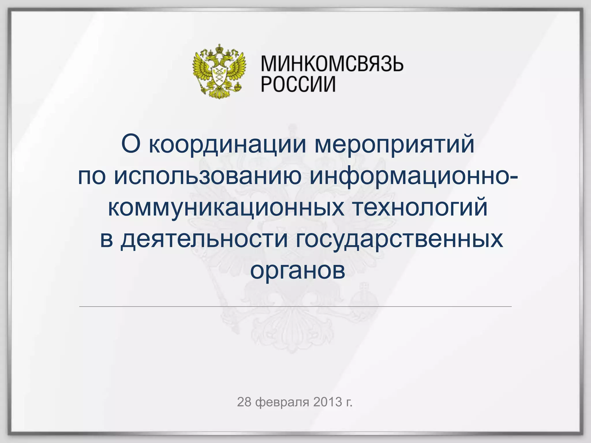 Документ описывает мероприятия по координации использования информационно-коммуникационных технологий (ИКТ) в деятельности государственных органов России, акцентируя внимание на необходимости повышения эффективности расходов и информатизации. В нём рассматриваются системные проблемы планирования бюджетных средств в сфере ИКТ и предлагаются новые методологические подходы к планированию, оценке и реализации мероприятий. Основная цель - создание эффективной и единой системы для организации ИКТ в государственных органах, включая активное вовлечение граждан через новые технологии.