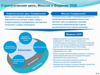 Документ описывает стратегическую дорожную карту Самарского государственного аэрокосмического университета, направленную на интеграцию с высокими технологиями и улучшение образовательной среды. Основные цели включают создание научно-образовательного кластера, привлечение международных ученых и модернизацию образовательных программ с акцентом на исследования. Также рассматриваются организационные изменения, необходимо для повышения конкурентоспособности университета на международной арене.