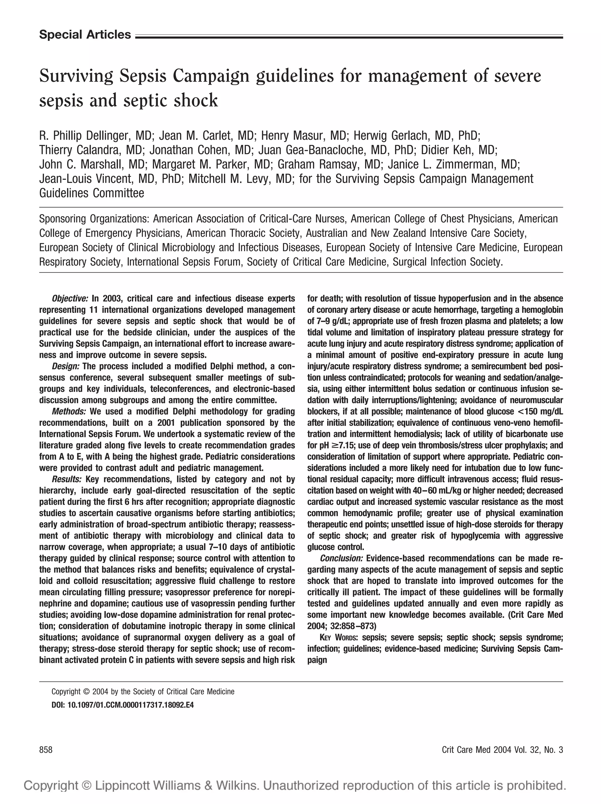 This document provides guidelines from an international panel of experts for the management of severe sepsis and septic shock. Some key recommendations include:
