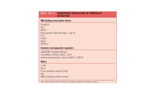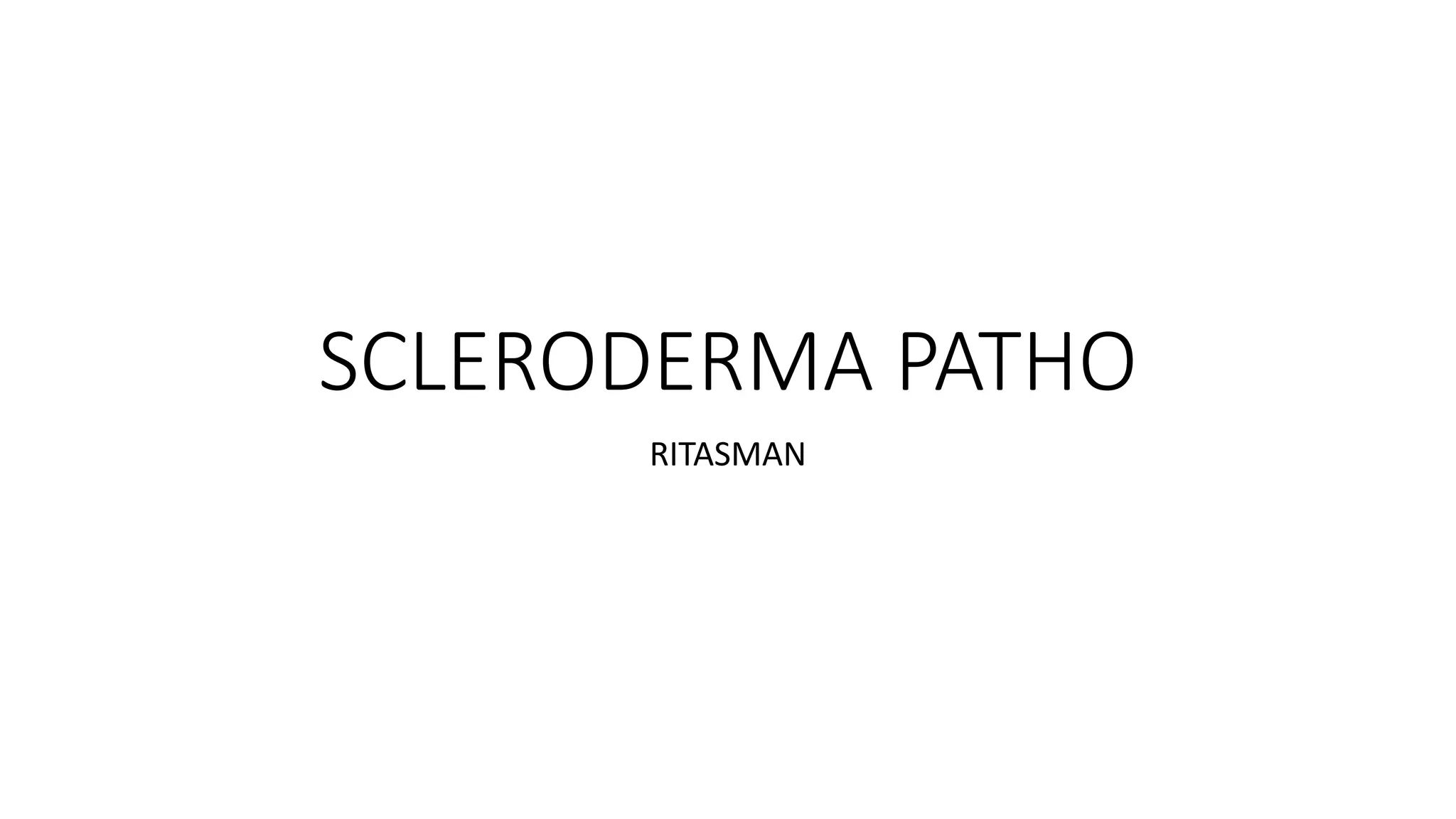 This document discusses the pathogenesis of scleroderma (SSc). It involves vascular damage, autoimmunity, and fibrosis. Innate and adaptive immunity play roles, as seen by autoantibodies, genetic polymorphisms in immune genes, and immune cell infiltration of affected tissues. Innate immune cells like macrophages and dendritic cells secrete profibrotic factors and activate pathways like TLR and inflammasome signaling that promote fibrosis. Oxidative stress, ER stress, and other cellular pathways are also involved. Various autoantibodies are implicated in tissue damage. Both humoral and cellular immune responses contribute to vascular injury and fibrosis. Myofibroblasts and TGF-beta signaling are key drivers of excessive collagen deposition.