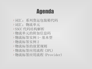 SSCC(系列货运包装箱代码)是用于唯一标识物流单元的代码,采用UCC/EAN-128条码表示,便于运输和仓储。文档详细解析了SSCC代码结构、附加信息码以及物流标签的应用和放置规则,确保供应链中的个体跟踪与管理。应用流程包括第三方物流(3PL)和供应商的具体操作。