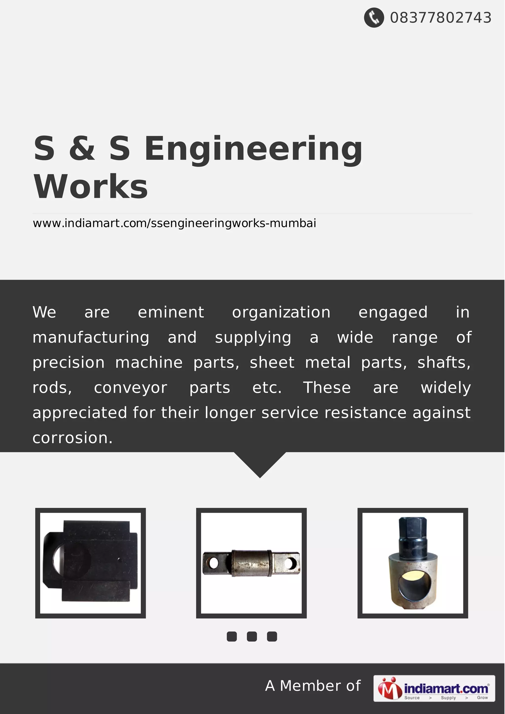 S & S Engineering Works, established in 2006, specializes in manufacturing and supplying precision machine parts including sheet metal parts, shafts, and conveyor components, known for their durability and resistance to corrosion. The company prioritizes quality, sourcing high-grade materials and adhering to international standards, while ensuring customer satisfaction through customized solutions. With a skilled workforce and a comprehensive product range, they serve various industries including pharmaceuticals and manufacturing.