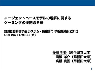 similarities between a game and an agent-based model. 結果高得点を得られた.