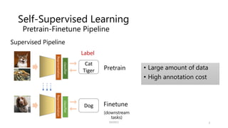 The document explores contrastive self-supervised learning, discussing its methodologies that reduce human annotation costs while promoting general representation learning. It highlights the effectiveness of various frameworks like MoCo and SimCLR, emphasizing their capabilities in distinguishing features among instances and the importance of both positive and negative samples. Additionally, the results demonstrate significant improvements in video tasks through the proposed inter-intra contrastive learning framework.