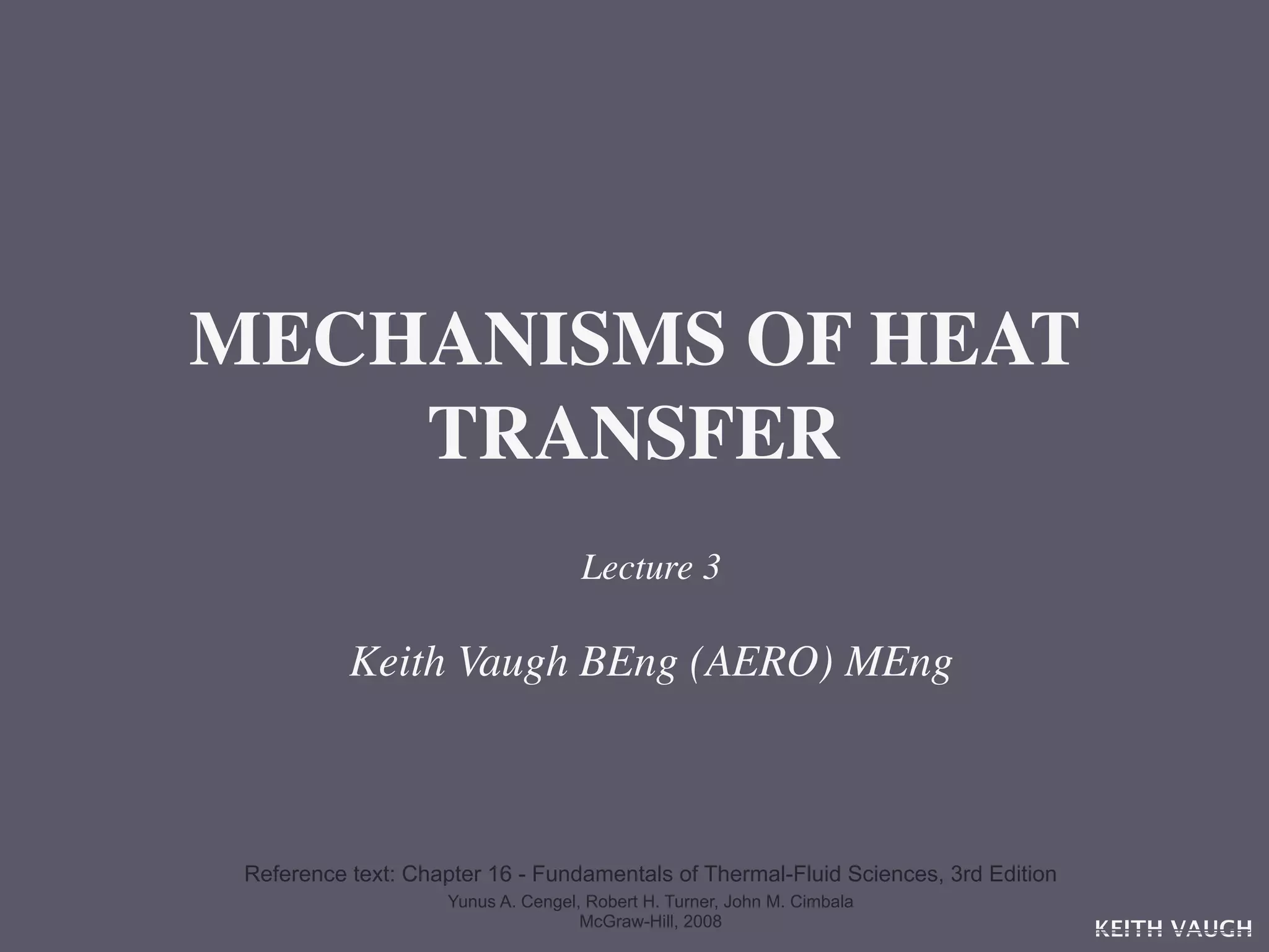 The document discusses the basic mechanisms of heat transfer, which are conduction, convection, and radiation. It describes conduction as the transfer of energy between particles through interactions and collisions. Conduction in solids is explained to occur through molecular vibrations and electron transport. Fourier's law of heat conduction establishes that the rate of heat conduction through a material is proportional to the thermal conductivity, temperature gradient, and area, while being inversely proportional to thickness. Thermal conductivity is introduced as a measure of a material's ability to conduct heat.