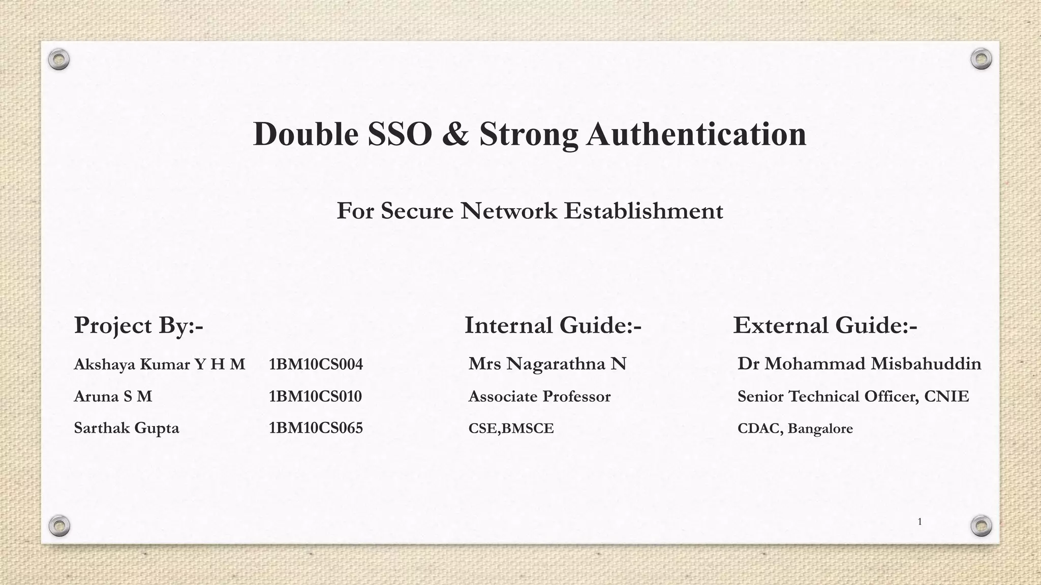 The document describes a double single sign-on (SSO) system for secure network establishment. It discusses the need for strong authentication and outlines the key components of the proposed system. The system separates user authorization from identification to enable asynchronous authorization. It employs Shamir's identity-based signature scheme, a zero-knowledge identification protocol, and Simmons' impersonation-proof identity verification scheme. The design establishes identity providers to generate and validate user credentials, allowing users to prove their identity to service providers. The system aims to reduce costs while improving security over existing SSO solutions.