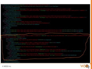 The document discusses single sign-on (SSO) solutions using OpenID, SAML 2.0, and WS-Trust. It provides an overview of each standard including key entities, profiles, messages and bindings. It also demonstrates each SSO solution using the WSO2 Identity Server.