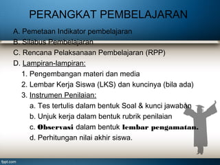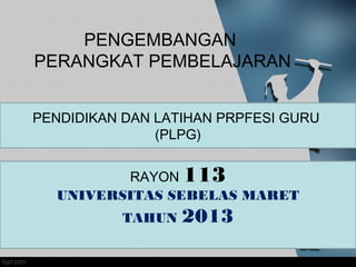 Dokumen ini membahas pengembangan perangkat pembelajaran pendidikan dan latihan profesi guru di Universitas Sebelas Maret, mencakup elemen seperti silabus, RPP, dan instrumen penilaian. Terdapat panduan untuk kegiatan pembelajaran mulai dari pendahuluan hingga penutup, serta rincian penilaian untuk kompetensi teknis dan psikomotor. Format perencanaan dan pelaksanaan pembelajaran disertakan untuk memfasilitasi pengajaran yang efektif.