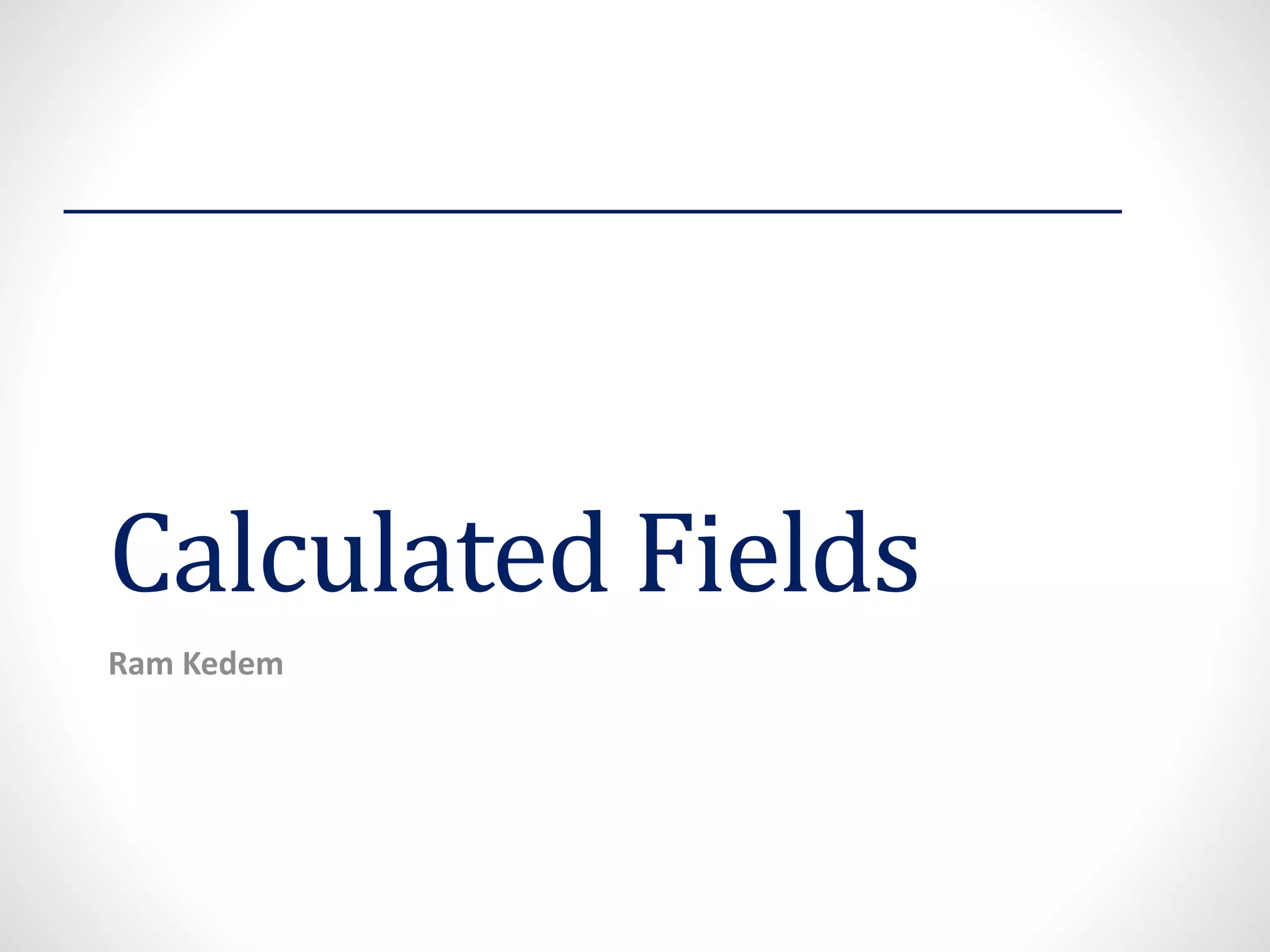 The document discusses various methods for creating calculated fields and columns in SQL and SSRS reports, including performing basic arithmetic, conditional logic, concatenating text, and manipulating dates. Calculated fields can be used to add new values that are derived from existing columns rather than stored in the underlying data. Methods like IIf, Switch, and DateDiff functions are demonstrated for conditional logic and date calculations. Text functions like Left, Right, and InStr are shown for extracting parts of strings.
