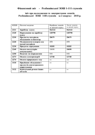Фінансовий звіт -Розбишівської ЗОШ 1-111 ступенів