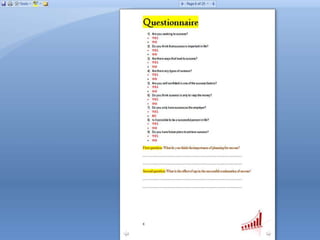 This document is the report from the group "Middle Glare" on their project about success. It includes sections on the abstract, acknowledgements, introduction, research methods, literature review, questionnaire design, data collection, findings, conclusion, and recommendations. The group found through questionnaires that most people see success as important and believe there are ways to achieve it through planning and a positive mindset. Their recommendations emphasize that success is difficult but possible with self-discipline and following guidelines. They hope to help others achieve success in life.