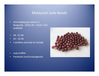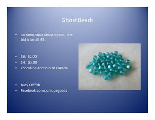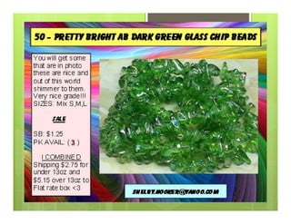This document is an advertisement for a St. Patrick's Day bead sale event on March 17th, 2014. It includes listings from multiple sellers offering various beads, pendants, findings, and jewelry-making supplies for sale. The items range in price from $1 to $14 and most sellers offer a combined shipping rate of $2.35.