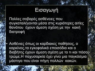παχυσαρκία,διάφοροι καρκίνοι κλπ.