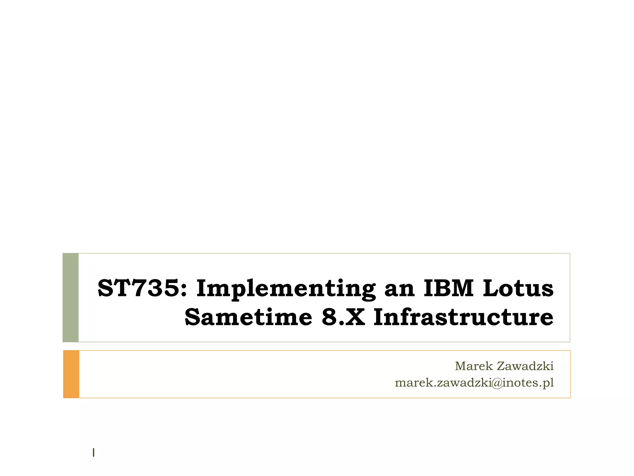 ST735: Implementingan IBM Lotus Sametime 8 . X Infrastructure Marek Zawadzki [email_address]