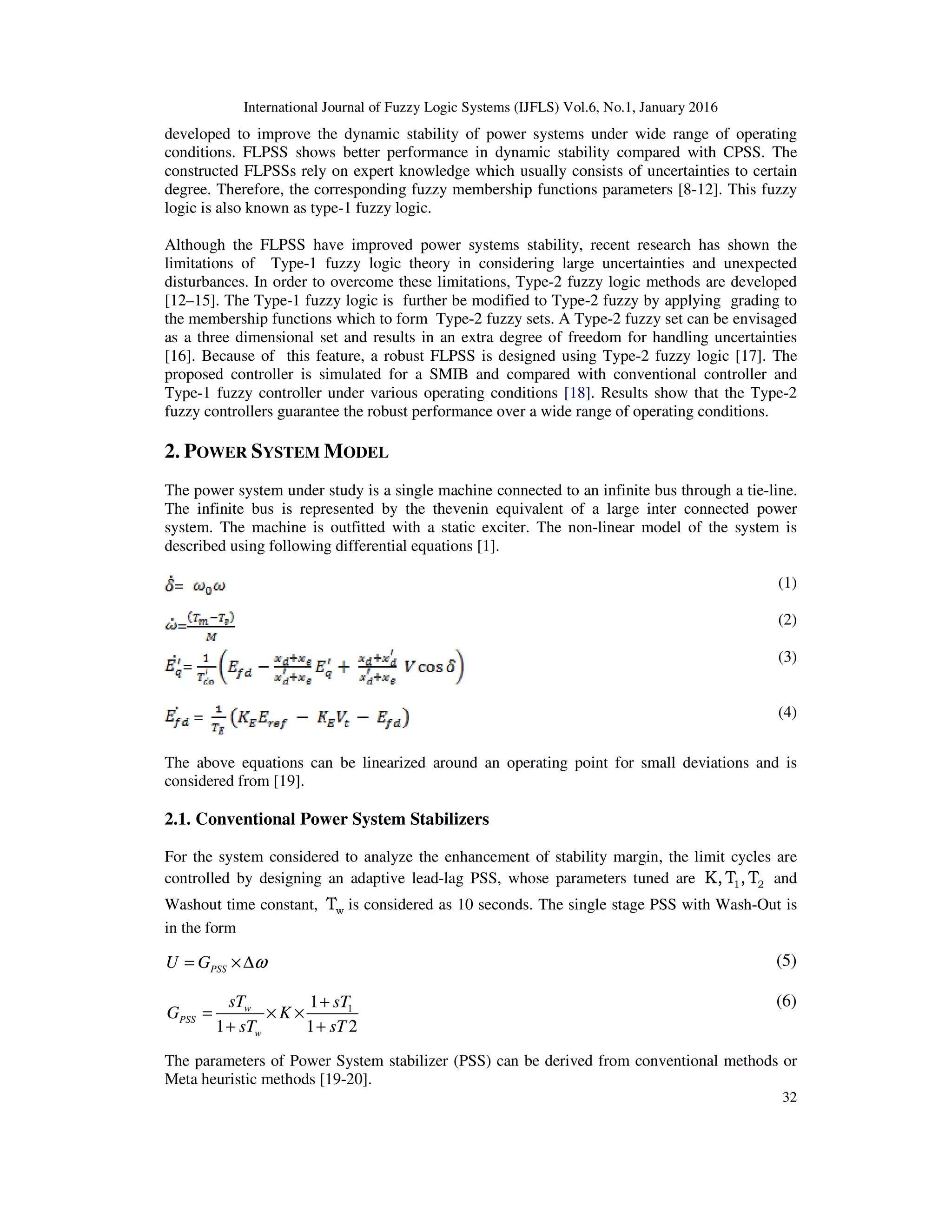 The paper proposes a Type-2 Fuzzy Logic Power System Stabilizer (FLPSS) to enhance the damping of power system oscillations, particularly focusing on improving stability under various operating conditions. The Type-2 FLPSS demonstrates superior performance compared to Conventional Power System Stabilizers (CPSS) and Type-1 FLPSS, exhibiting reduced settling times and lower peak overshoot and undershoot during simulations. Results confirm the effectiveness of the Type-2 FLPSS in maintaining stability across diverse load variations in a single machine infinite bus power system model.