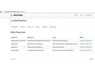 The document provides an overview of 'Stackmate,' a tool that integrates with AWS CloudFormation to manage cloud resources using a JSON-based templating system. It describes the functionalities including parsing, validation, and execution of stack templates while ensuring proper resource creation order and dependency management. Additionally, future directions for Stackmate and Stacktician are mentioned, focusing on extending support for more resource types and improved orchestration capabilities.