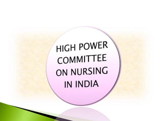 3. A High Power Committee reviewed nursing roles, functions, preparation, services and made recommendations to improve the nursing profession in India.