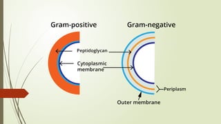 • Gram Staining: Differentiates bacteria into Gram-positive and Gram-
