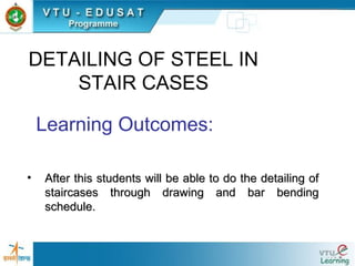 3) Detailing principles for steel in staircases including main steel, distribution steel, and anchorage.