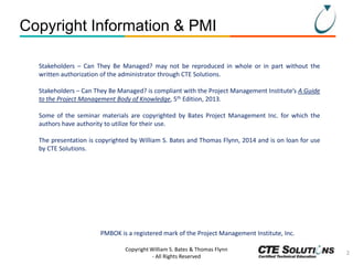 The document discusses stakeholder management within project management, emphasizing that stakeholders are individuals or organizations significantly affected by a project's execution or completion. It outlines the processes for identifying, classifying, and engaging stakeholders, while also highlighting the importance of effective communication throughout a project's life cycle. Ultimately, successful stakeholder management is presented as crucial for achieving project success.