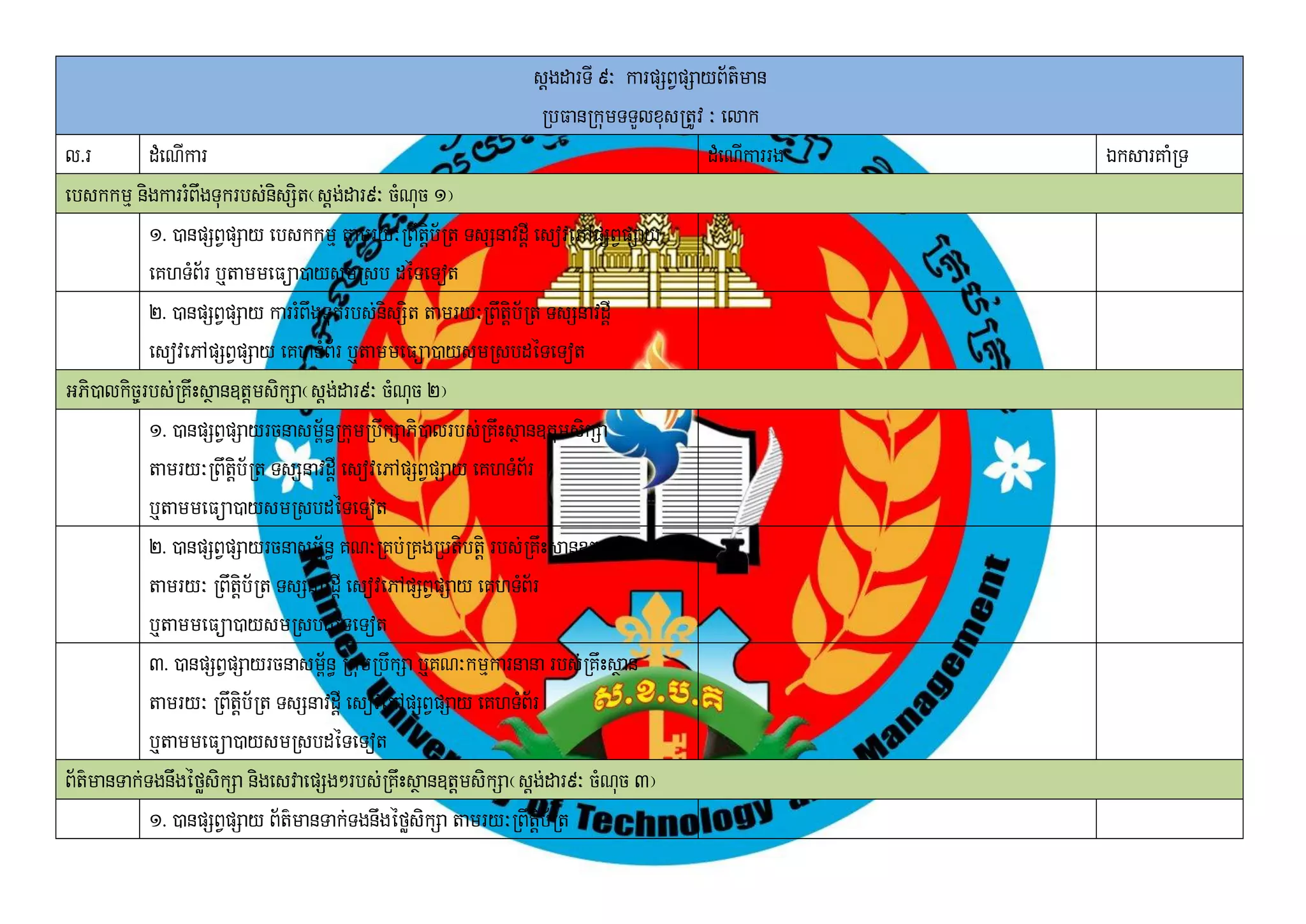 RbFanRkumTTYlxusRtUv ³ elak l>r dMeNIkar dMeNIkarrg ÉksarKaMRT ebskkmµ nigkarrMBwgTukrbs;nsSit¬sþg;dar9³ cMNuc 1¦ i 1> )anpSBVpSay ebskkmµ tamry³RBwtþb½Rt TsSnavdþI esovePApSBVpSay i eKhTMB½r b¤tammeFüa)aysmRsb déTeTot 2> )anpSBVpSay karrMBwgTukrbs;nsSit tamry³RBwtþib½Rt TsSnavdþI i esovePApSBVpSay eKhTMB½r b¤tammeFüa)aysmRsbdéTeTot GPi)alkic©rbs;RKwHsßan]tþmsikSa¬sþg;dar9³ cMNuc 2¦ 1> )anpSBVpSayrcnasm<½n§RkumRbwkSaPi)alrbs;RKwHsßan]tþmsikSa tamry³RBwtib½Rt TsSnavdþI esovePApSBVpSay eKhTMB½r þ b¤tammeFüa)aysmRsbdéTeTot 2> )anpSBVpSayrcnasm<½n§ KN³RKb;RKgRbtibtþi rbs;RKwHsßan]tþmsikSa tamry³ RBwtþib½Rt TsSnavdþI esovePApSBVpSay eKhTMB½r b¤tammeFüa)aysmRsbdéTeTot 3> )anpSBVpSayrcnasm<n§ RkumRbwkSa b¤KN³kmµkarnana rbs;RKwHsßan ½ tamry³ RBwtþib½Rt TsSnavdþI esovePApSBVpSay eKhTMB½r b¤tammeFüa)aysmRsbdéTeTot B½t’manTak;TgnwgéføsikSa nigesvaepSg²rbs;RKwHsßan]tþmsikSa¬sþg;dar9³ cMNuc 3¦ 1> )anpSBVpSay B½t’manTak;TgnwgéføsikSa tamry³RBwtþib½Rt