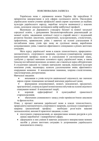 українською мовою учнями профільної ланки сприяє залученню до надбань