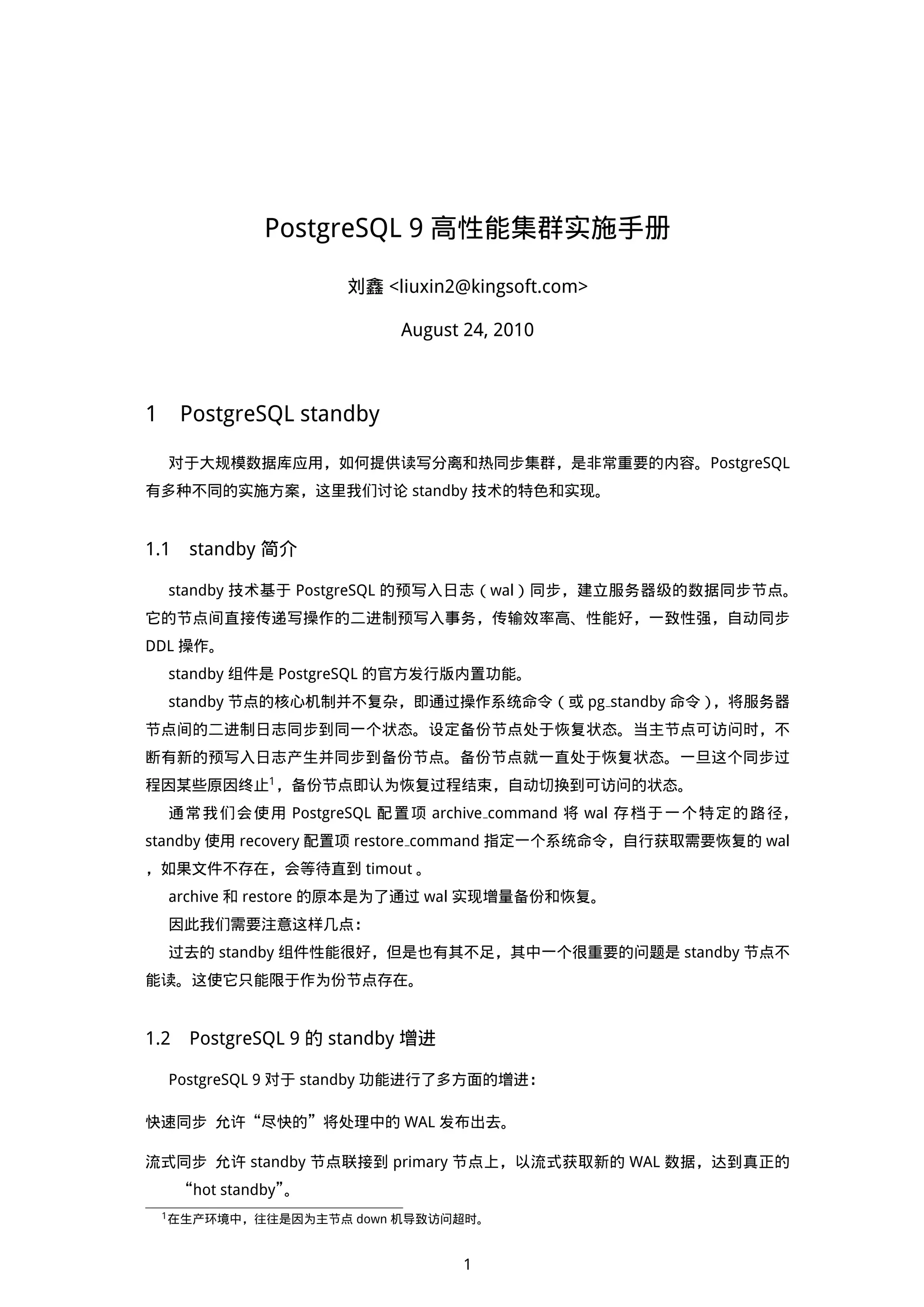 Figure 2: PostgreSQL 9 的 standby