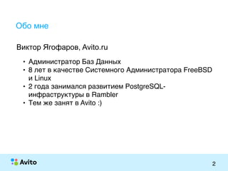 Доклад Виктора Ягофарова освещает подходы к резервированию PostgreSQL в компании Avito, включая использование HAProxy и PgBouncer для повышения отказоустойчивости. Обсуждаются преимущества разных режимов пула соединений, а также проблемы, с которыми можно столкнуться при переключении и конфигурации систем. В заключение предоставляются советы и рекомендации по настройке и оптимизации процессов.
