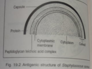 Staphylococcus is a common cause of skin infections in humans. Staphylococcus aureus is an important pathogenic species. It is gram-positive, catalase-positive, and produces coagulase. S. aureus causes a variety of infections, including skin and soft tissue infections like boils and abscesses. It can also cause pneumonia, osteomyelitis, toxic shock syndrome, and food poisoning. Laboratory diagnosis involves culturing specimens on blood agar and performing tests like the coagulase test and mannitol fermentation. Treatment involves antibiotics like penicillin, cloxacillin, or vancomycin for resistant strains.
