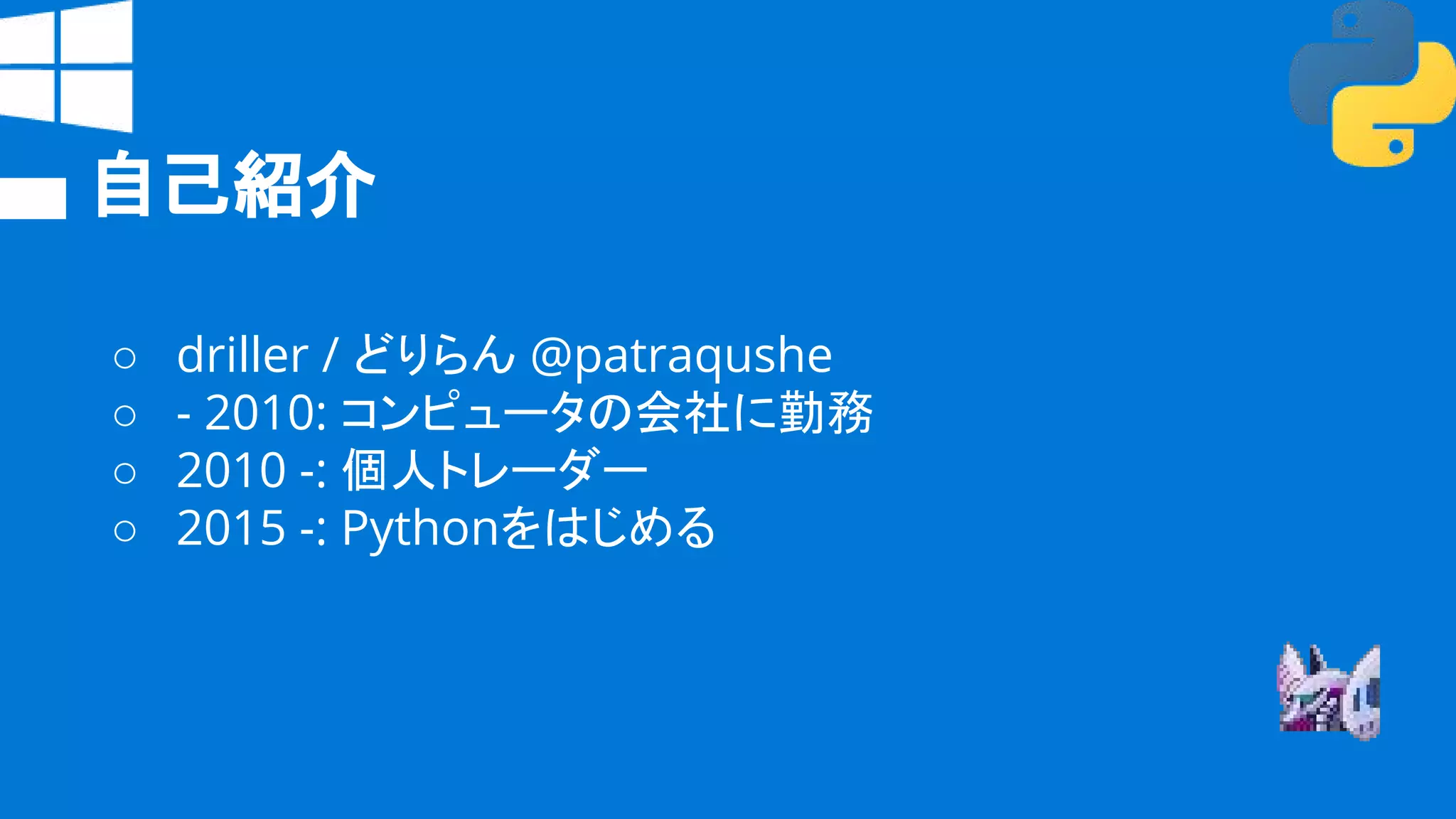 みんなのPython勉強会#22 2017/03/08 driller@patraqushe