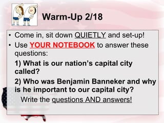 The document discusses the history of the United States' national anthem, "The Star-Spangled Banner". It was written by Francis Scott Key during the War of 1812 after witnessing the bombardment of Fort McHenry on September 14, 1814. Key was inspired to write the poem after seeing the American flag still waving over the fort at dawn despite the night of bombardment. The poem later became the lyrics to the national anthem.