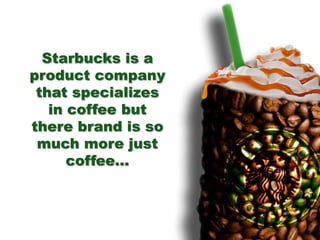 Starbucks started in 1971 in Seattle's Pike Place Market with one store and has grown to a global company with over 18,000 stores in 62 countries. Starbucks prides itself on customer service and high quality coffee and products. The chairman wanted to create a place for community and conversation. Starbucks offers reasonably priced products from $5 coffee to $200 coffee machines. Their target market is ages 13-40 who enjoy coffee and busy lifestyles.