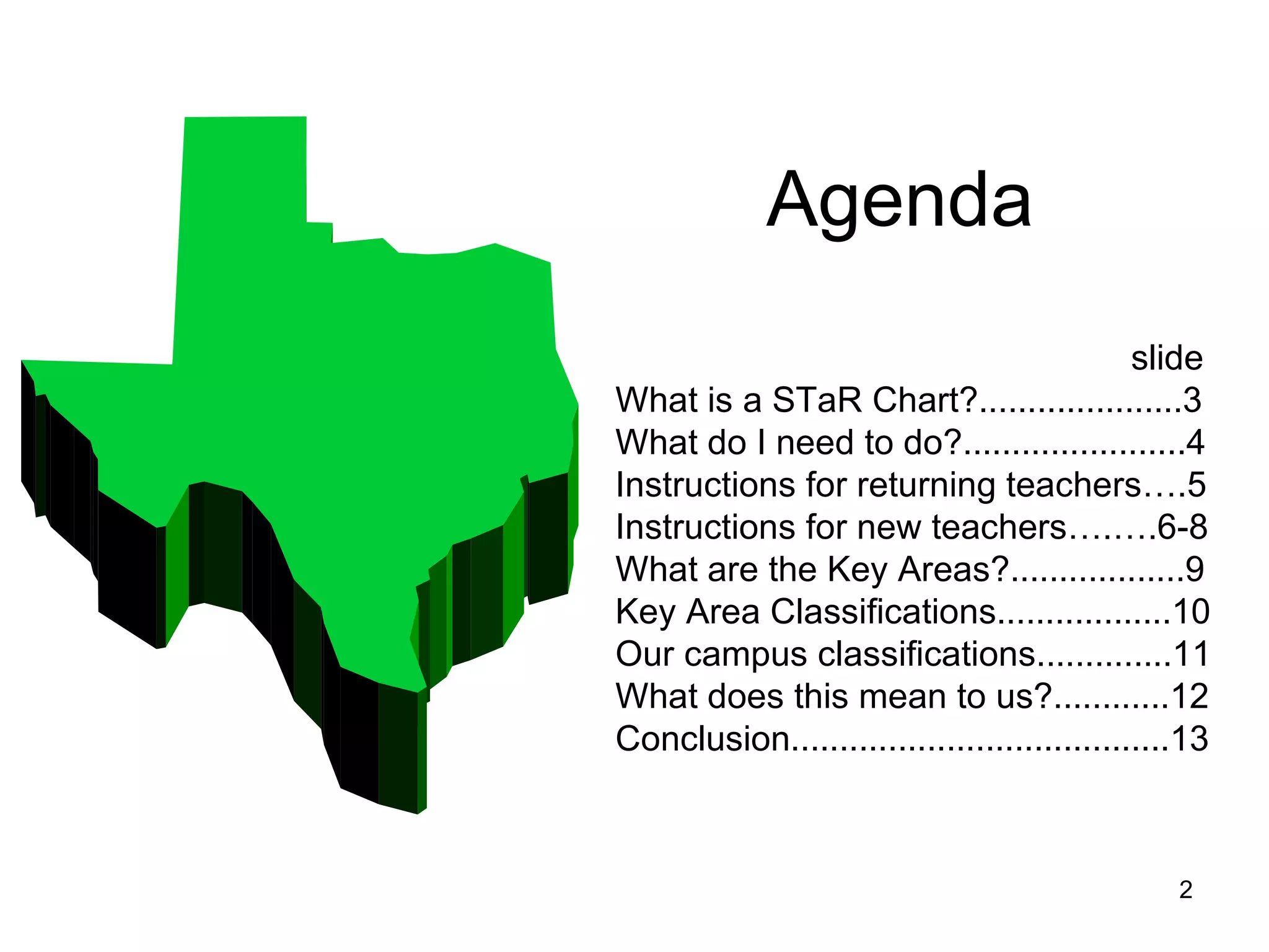 The document provides instructions for teachers to complete the Texas STaR Chart survey to self-assess the school's technology integration efforts. It outlines the website URL and login steps for returning vs. new teachers. It also summarizes the four key areas assessed by the STaR Chart - Teaching and Learning, Educator Preparation, Leadership/Administration, and Infrastructure. The school's 2008-2009 results show they need to improve Teaching/Learning and Educator Preparation, continue advancing Leadership/Administration, and maintain Infrastructure successes. Completing the STaR Chart will help the school maximize technology usage benefits.
