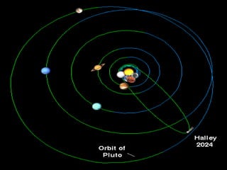 The document discusses celestial objects, including stars, planets, and satellites, providing detailed information about their characteristics and movements. It explains the solar system's structure, including the eight planets and their key features, as well as the nature of moons, comets, asteroids, and artificial satellites. Additionally, it describes important constellations and the significance of light years in measuring distances in space.