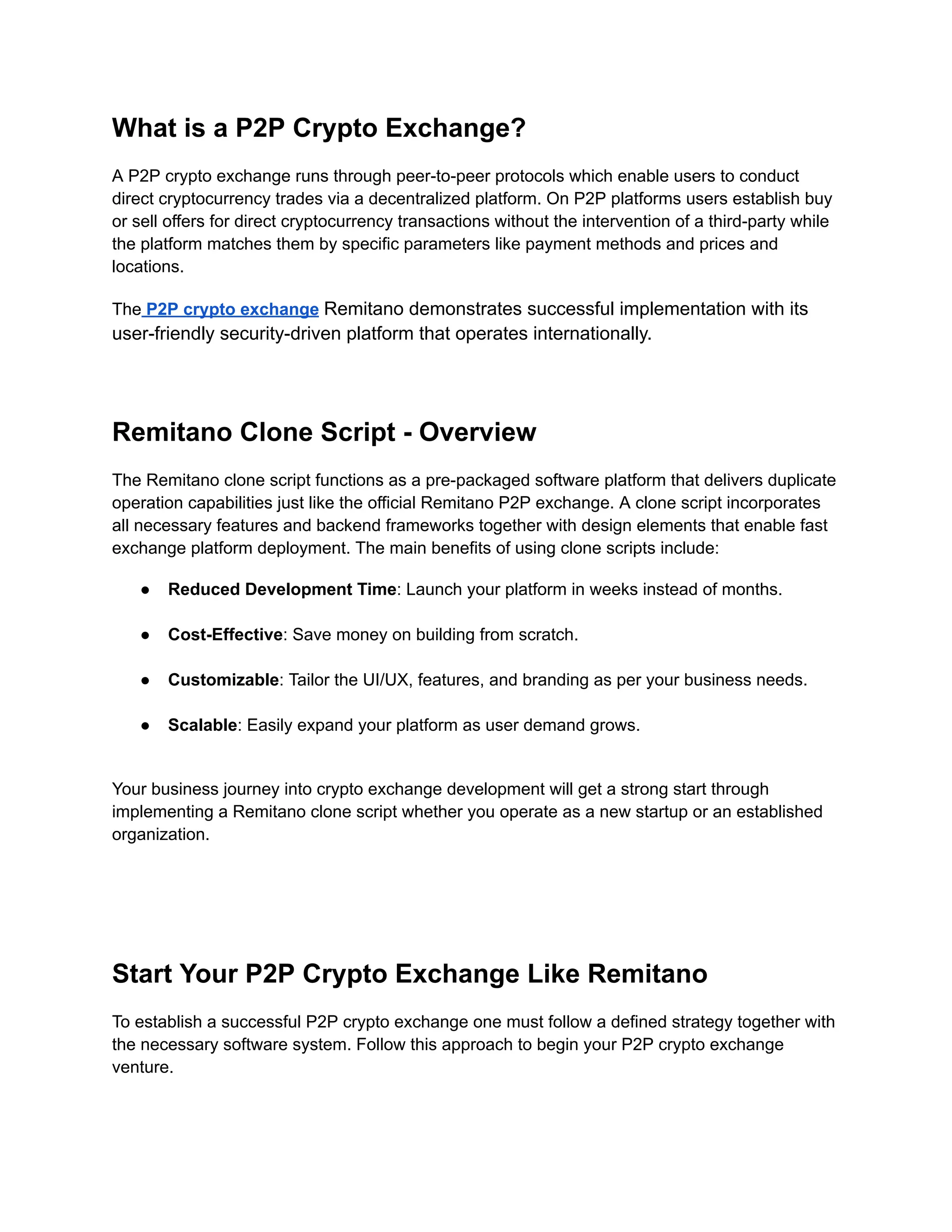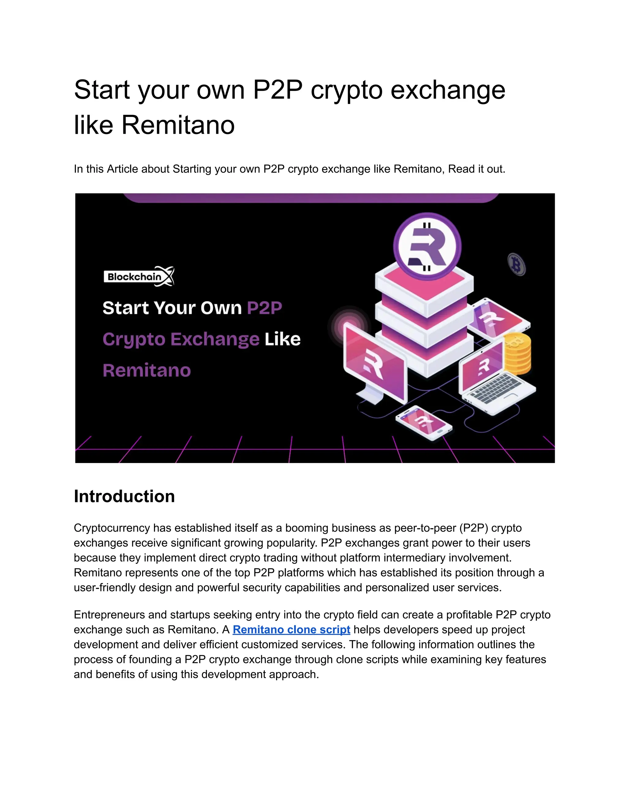 Initiating a P2P crypto exchange platform like Remitano represents an attractive business